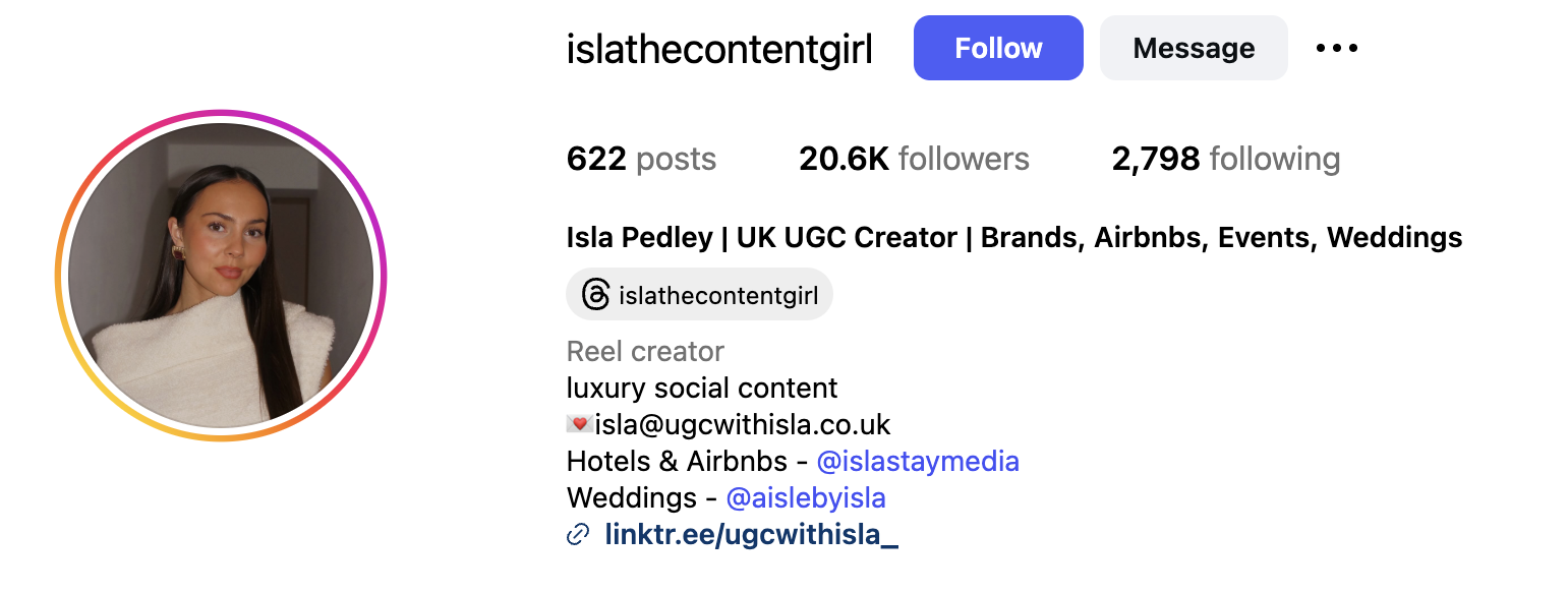14. Isla Pedley - @islathecontentgirl - 20.6K followers