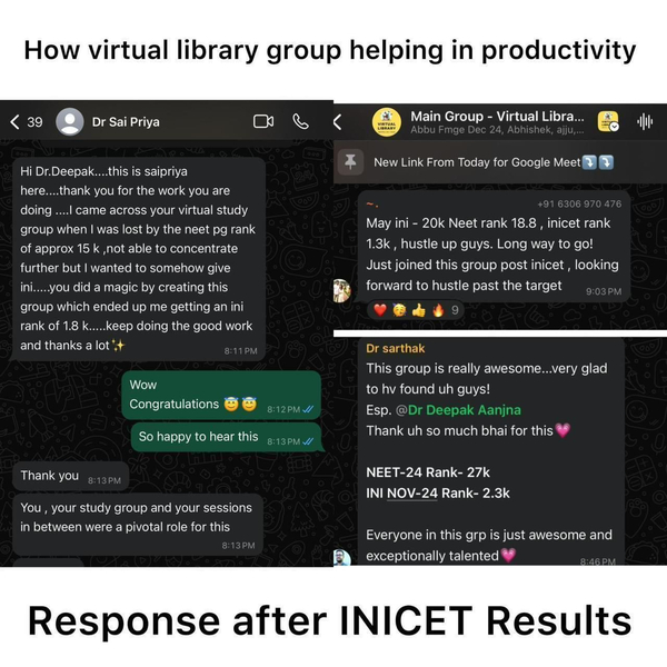 In short, our Virtual Library isn’t just a study group — it’s a big extended family of NEET PG aspirants who support, inspire, and grow together without competition. Because when everyone around you is studying with the same goal, you don’t just prepare — you transform. 💪📚