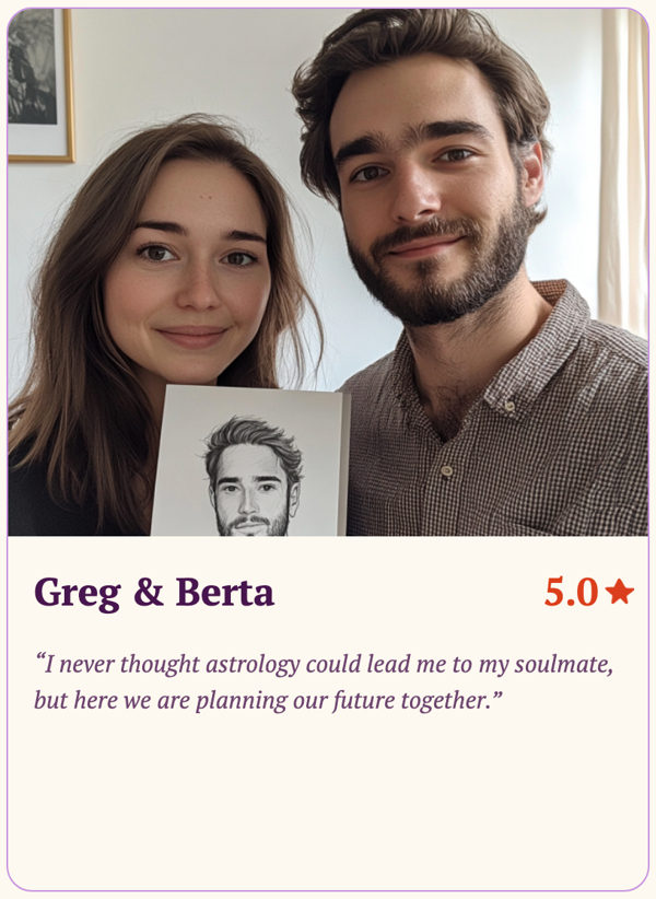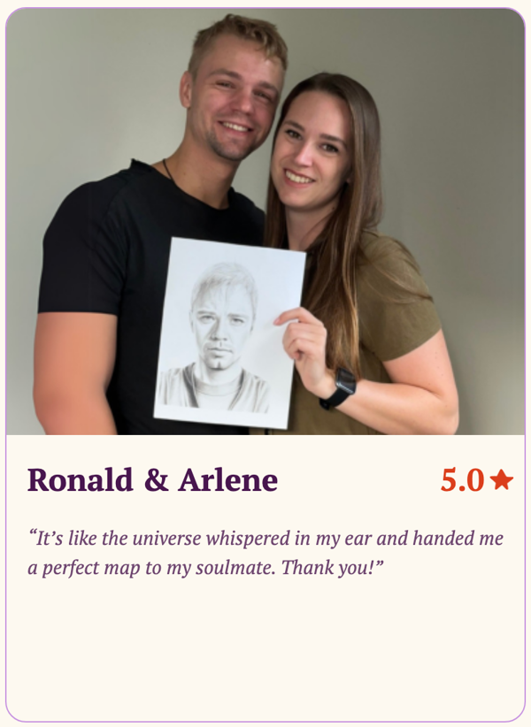 Discover the secrets of your romantic future with our Psychic Soulmate Sketch and Reading service. This unique experience blends artistic talent with psychic insight, offering a personalized glimpse into your future partner's essence. Our talented artists and skilled psychics collaborate to create a one-of-a-kind portrayal of your soulmate, paired with a detailed analysis of your love life's potential path.